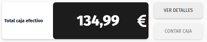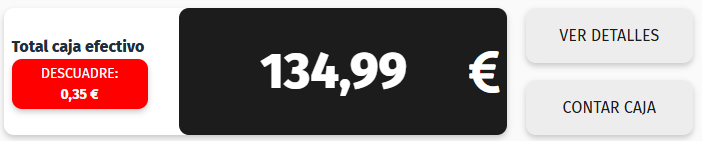 4.-Antes de contar el cambio, podemos observar como en el botón de Total Caja Efectivo se muestra una información del Descuadre (si lo hubiera)