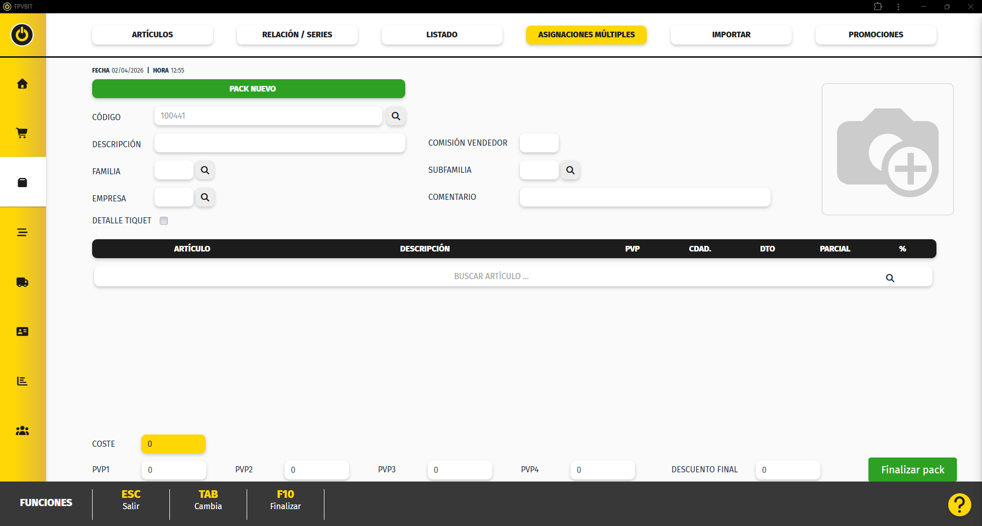 Pulsa F10 – Finalizar o el botón Finalizar pack