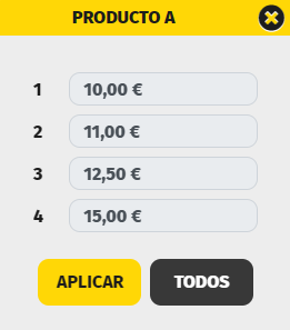 - Todos : la tarifa indicada se aplicará a todos los productos de la pantalla de ventas.