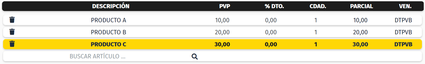 En el caso de haber seleccionado productos y querer eliminar alguna de las líneas, puedes eliminarla de diferentes formas: