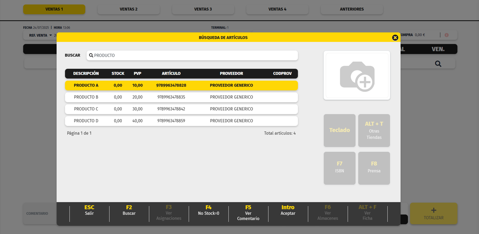 El sistema admite múltiples métodos de búsqueda para añadir artículos en la venta: