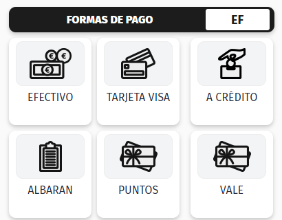 Al totalizar una venta, por defecto, la forma de pago con la que se finalizará es Efectivo. En caso de querer modificar la forma de pago, existen 2 opciones para realizarlo :