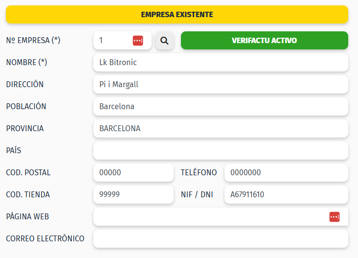 - Se mostrará el indicador “Verifactu Activo” en la ficha de la empresa.