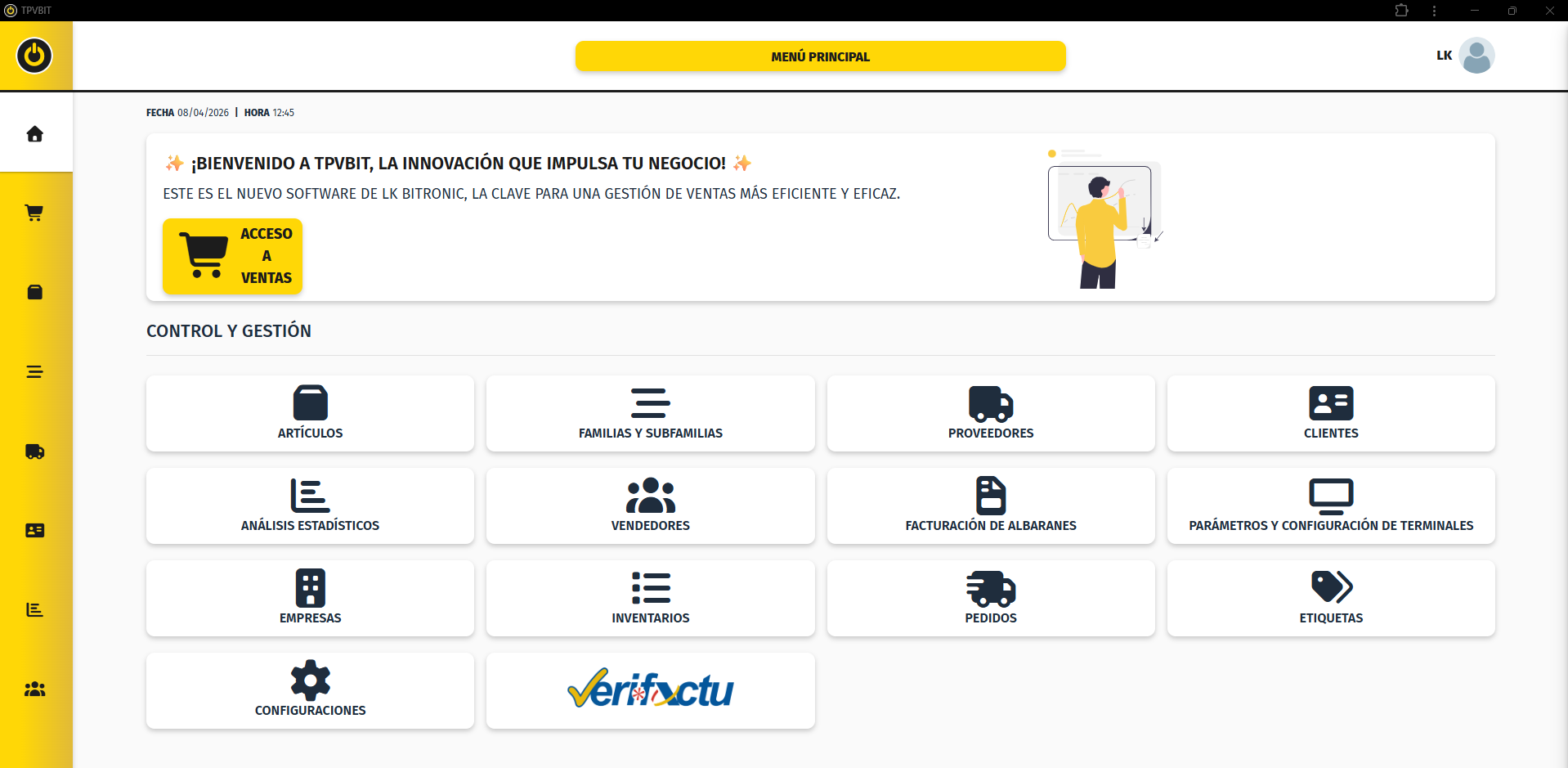 Una vez activado Verifactu aparecerá un nuevo botón de Verifactu en el menú principal del programa.