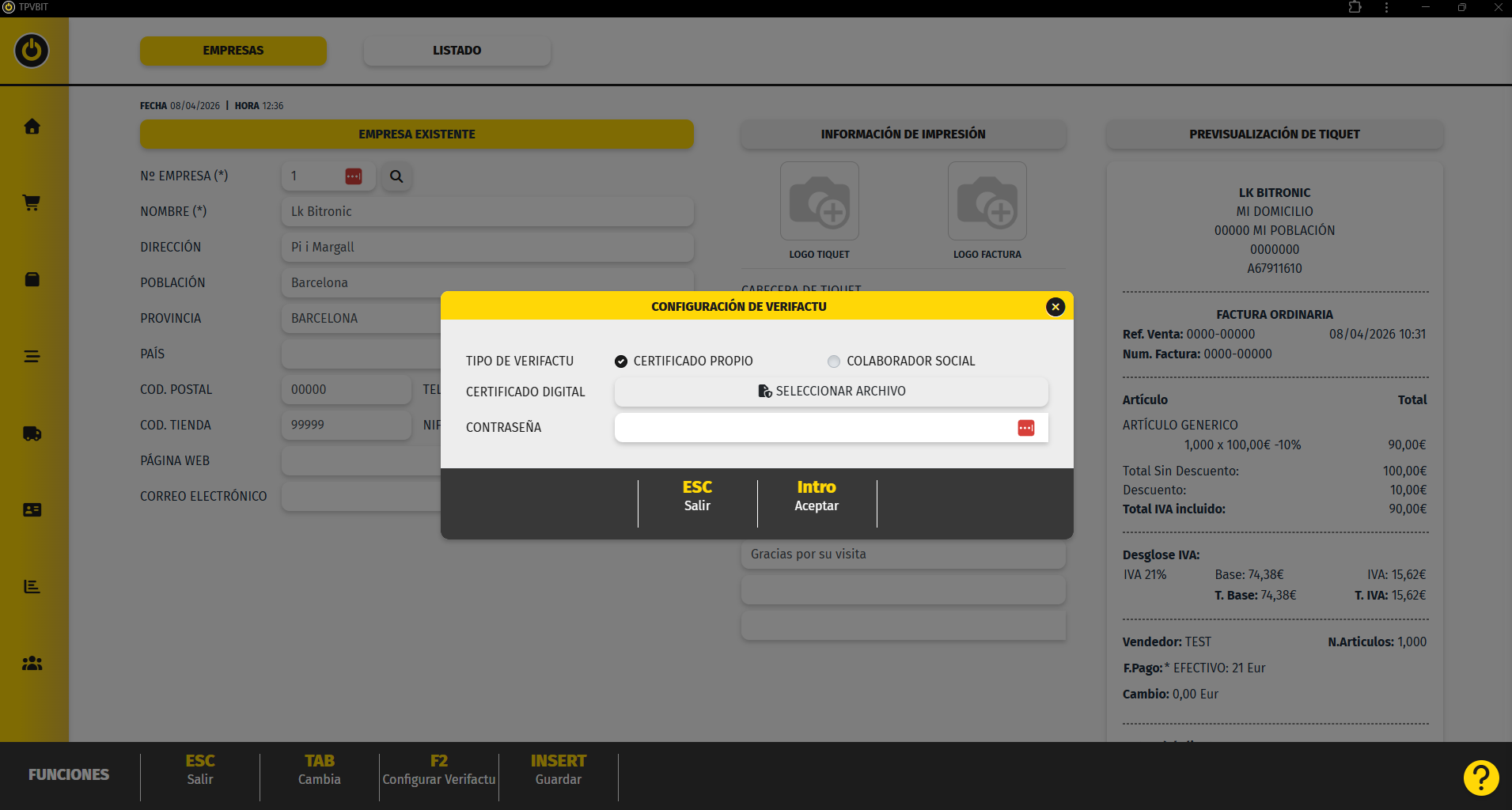 Para poder configurar Verifactu, es necesario disponer de un certificado digital válido.