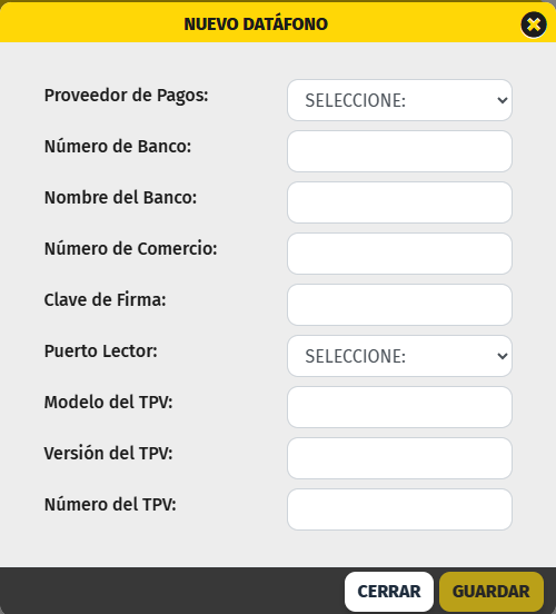 En esta pantalla deberemos indicar los datos proporcionados por el técnico del banco que haya instalado previamente el datáfono en el equipo.