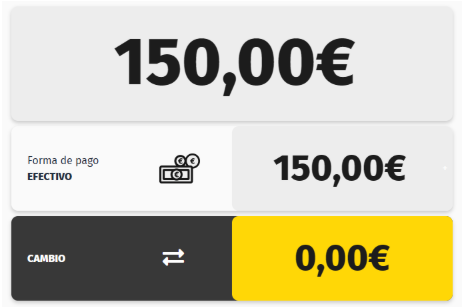 Importe de la venta, importe entregado por el cliente y cambio que se le ha de dar al cliente.