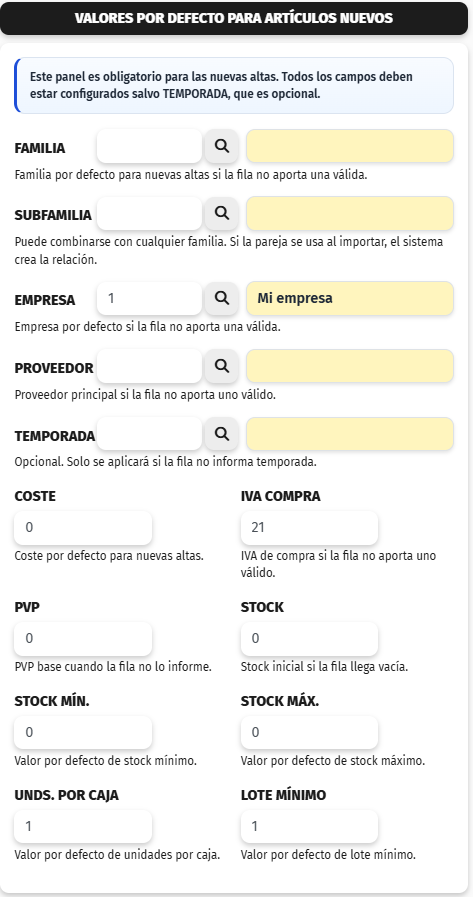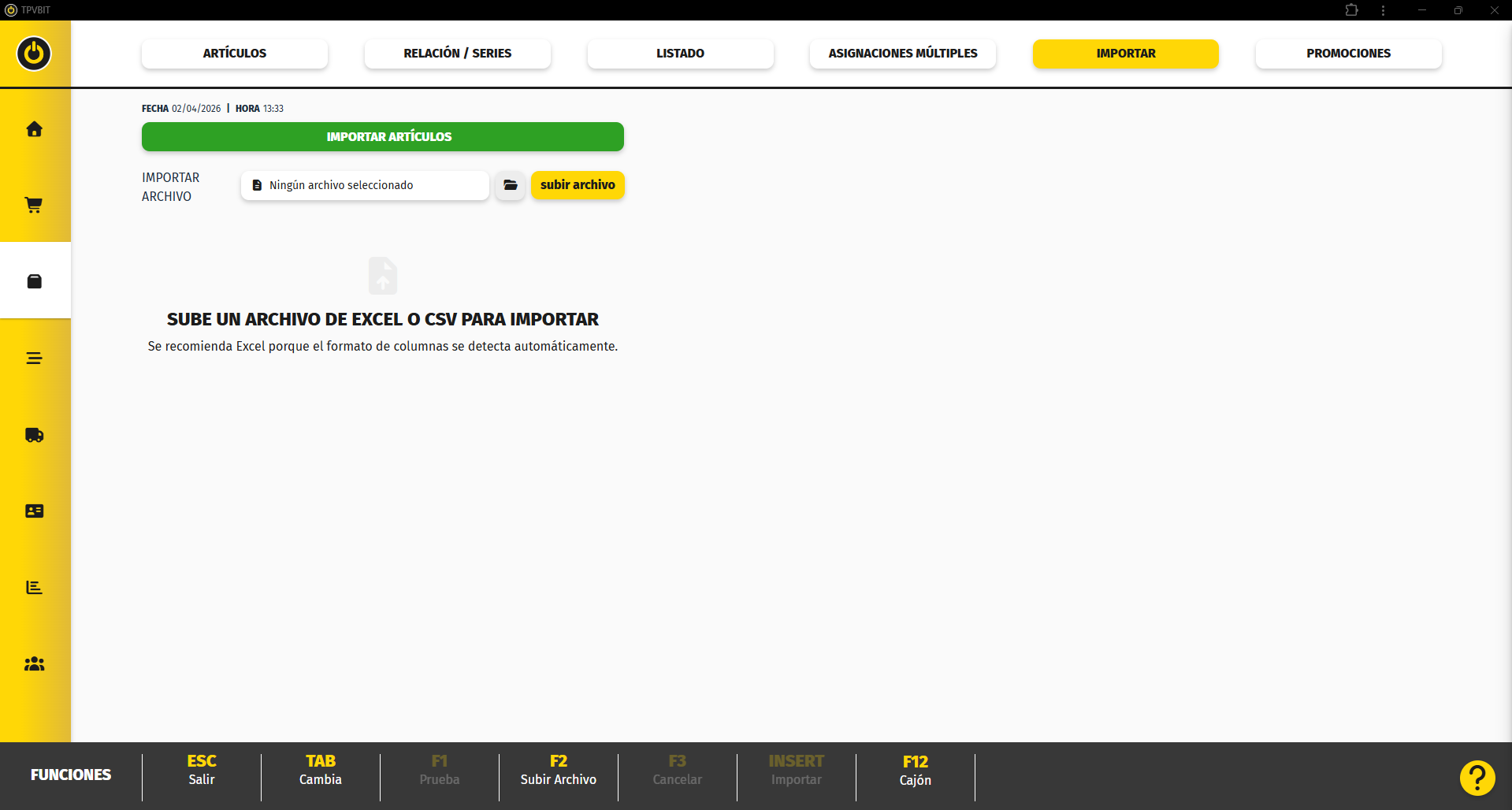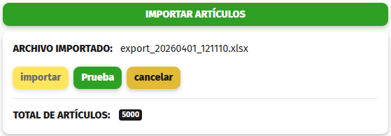 La importación de artículos permite dar de alta múltiples productos en el sistema de forma masiva mediante un archivo.