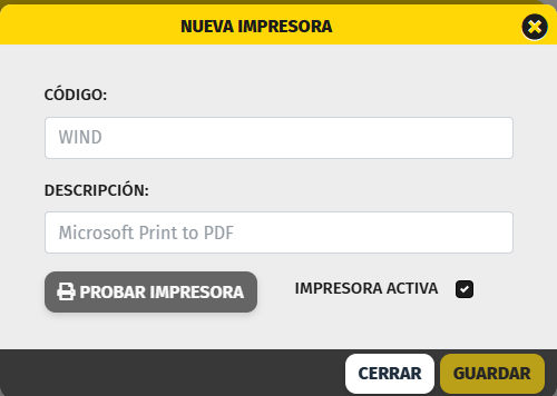 La impresora previamente debe estar configurada en windows con los drivers y los puertos correspondientes.