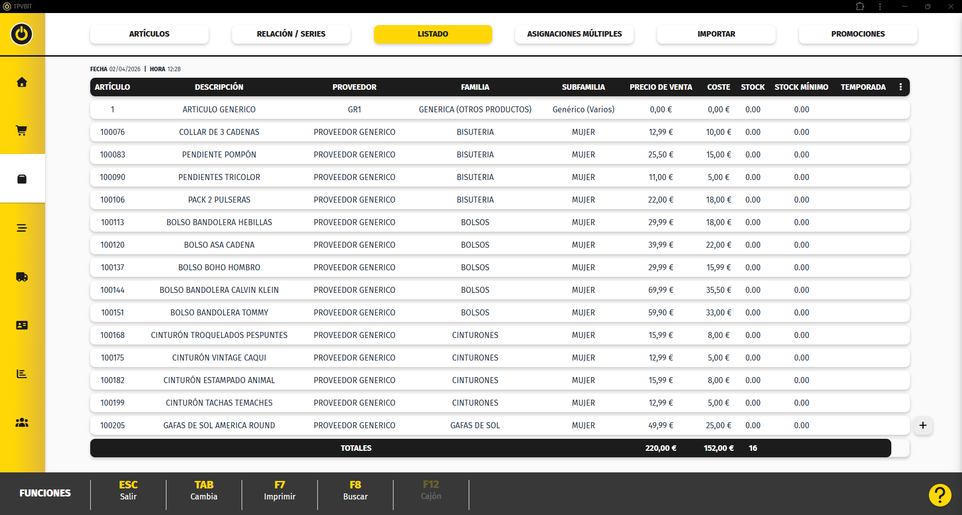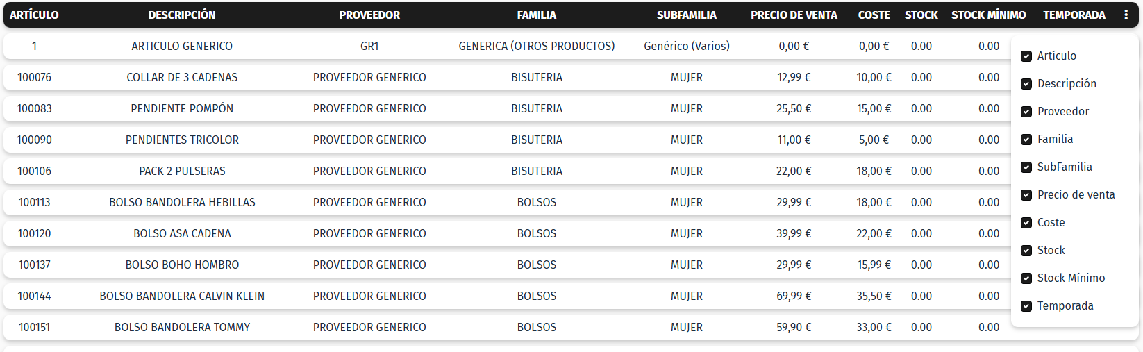 El listado de artículos es la pantalla donde se muestran todos los artículos registrados en el sistema.
