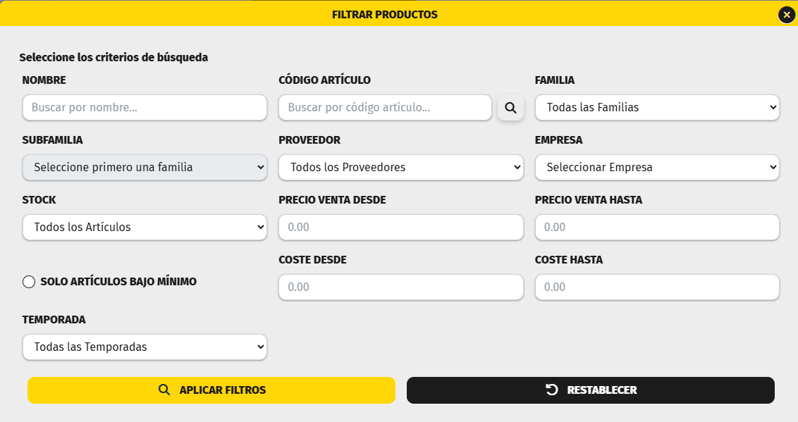El sistema mostrará únicamente los artículos que cumplen las condiciones.