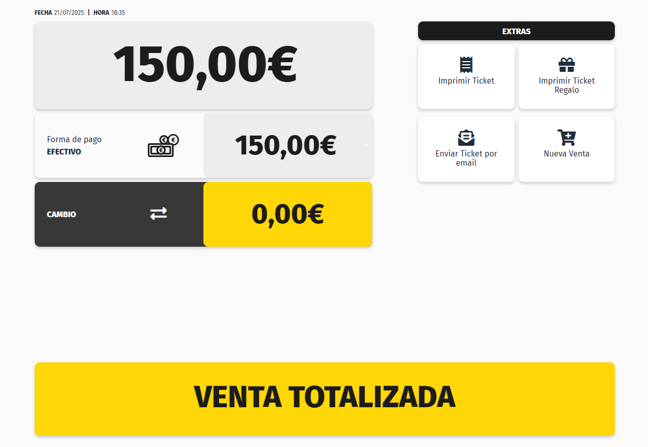 (+) Totalizar cambia a la pantalla de finalización de venta.