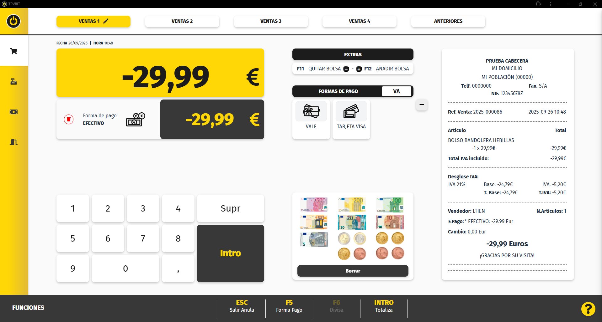- Como en este caso, si el valor del vale es superior, nos generara un nuevo ticket con la diferencia.